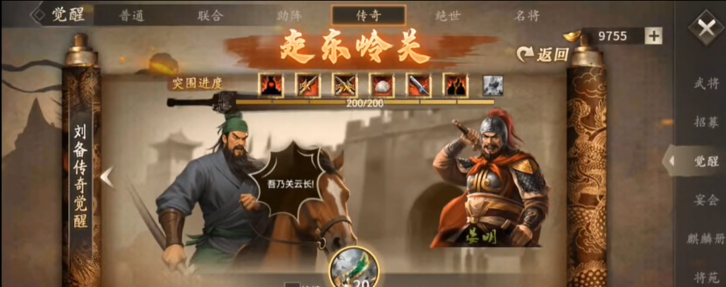 成功的挑战始于周密的战前准备,阵容搭配应围绕控制、持续输出与爆发收割构建。推荐使用祝融、觉醒周瑜和觉醒甘宁组成的铁三角体系,其中祝融负责利用其战法触发混乱效果控制敌方前排队列,为后续输出创造安全窗口。武将的装备配置需优先保障生存,选择增加防御和血量的套装与御宝,例如为祝融搭配战车和烛龙套装以强化先手优势。兵器等级与宝石系统的提升至关重要,应确保攻防宝石达到一定等级,并优先考虑镶嵌如斩杀、暴击等实用技能的高级晶石以增强整体战力。